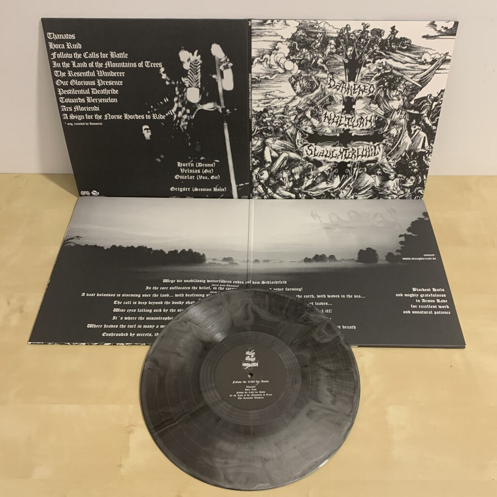 Reprint, 500x heavyweight galaxy (black/silver) 12" (180g) in a black poly-lined innersleeve, insert 2 page on 140g offset paper, gatefold jacket on 350g uncoated (matte) with UV parcial lacquer, all assembled in a PVC overbag.